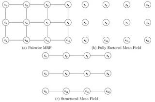 Now we consider a structured mean field approximation $Q$ (c in figure), parameterized by edge potentials $\psi_{ij}(x_i,x_j)$ for each edge $(x_i , x_j)$.
